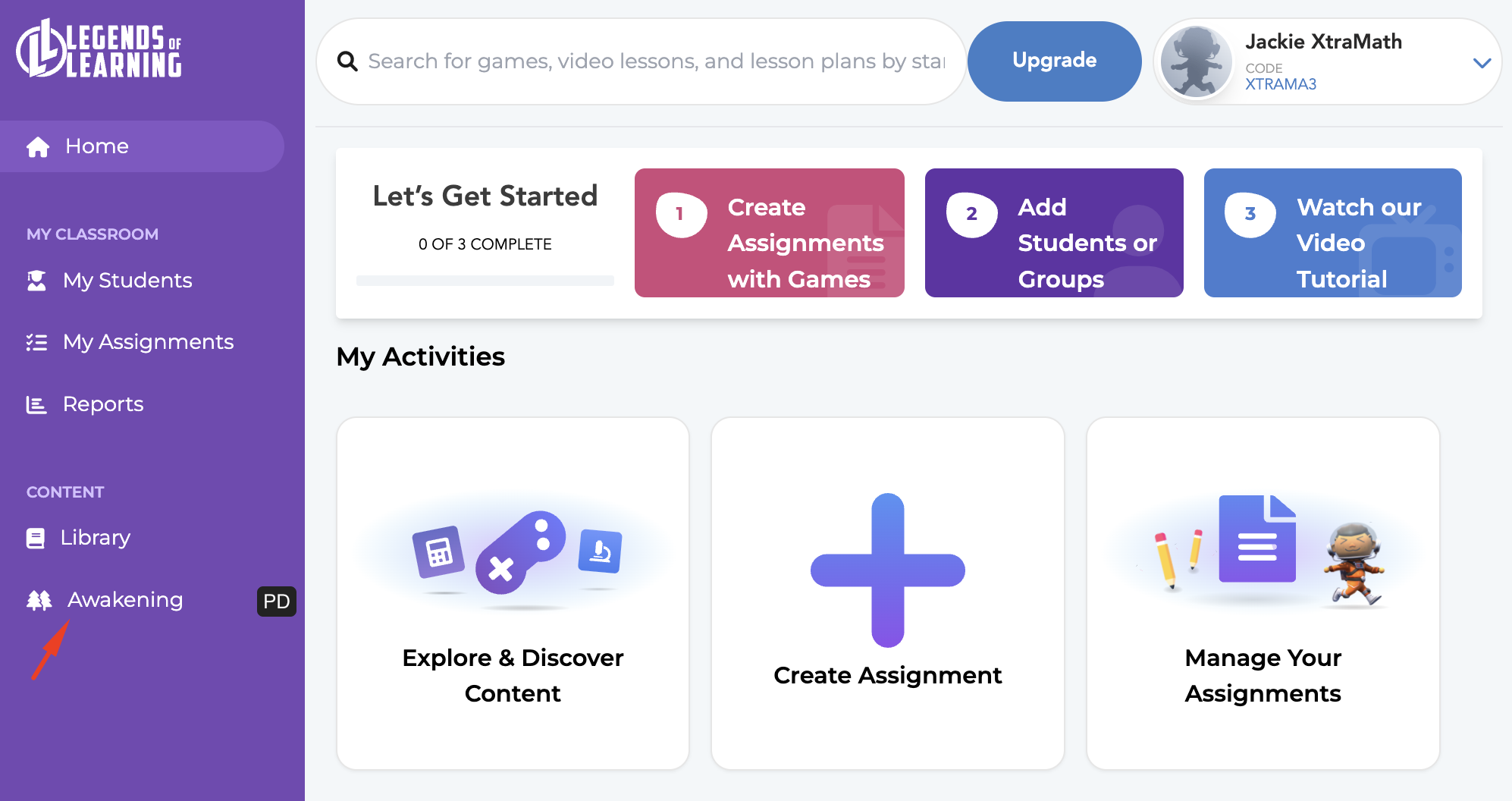- One-Click Transition: We have added a dedicated button directly on your XtraMath Teacher Dashboard. Clicking this button now takes you straight to the Awakening Teacher Portal, no extra login, no searching for the right URL.