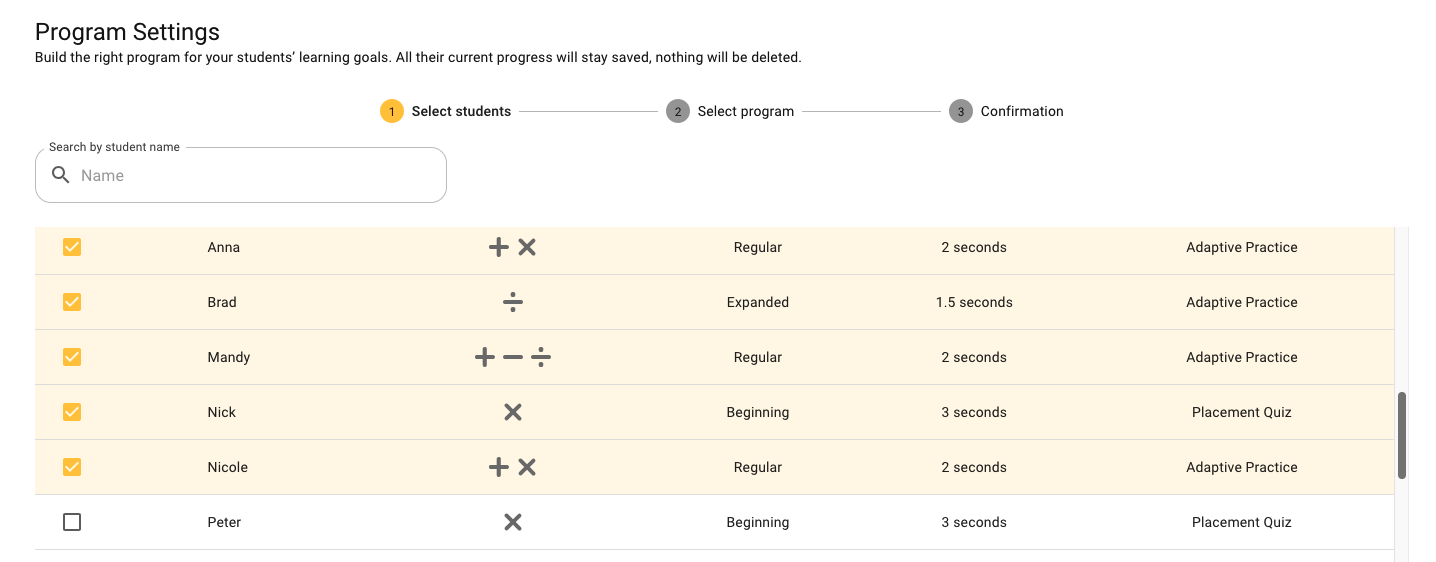 You can assign or edit learning programs for one or more students in your class anytime.