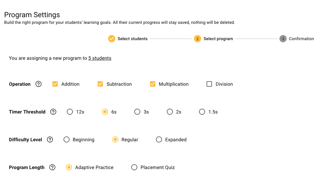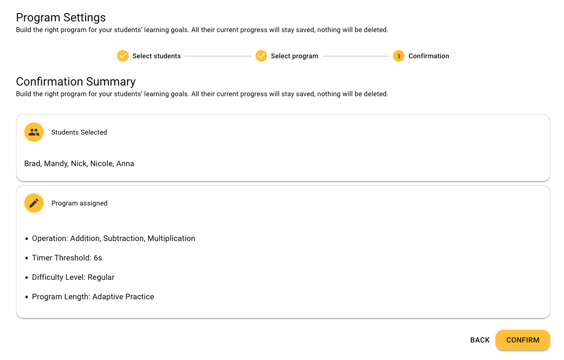 3. Confirmation Summary: Double-check students and program settings, then save to apply.