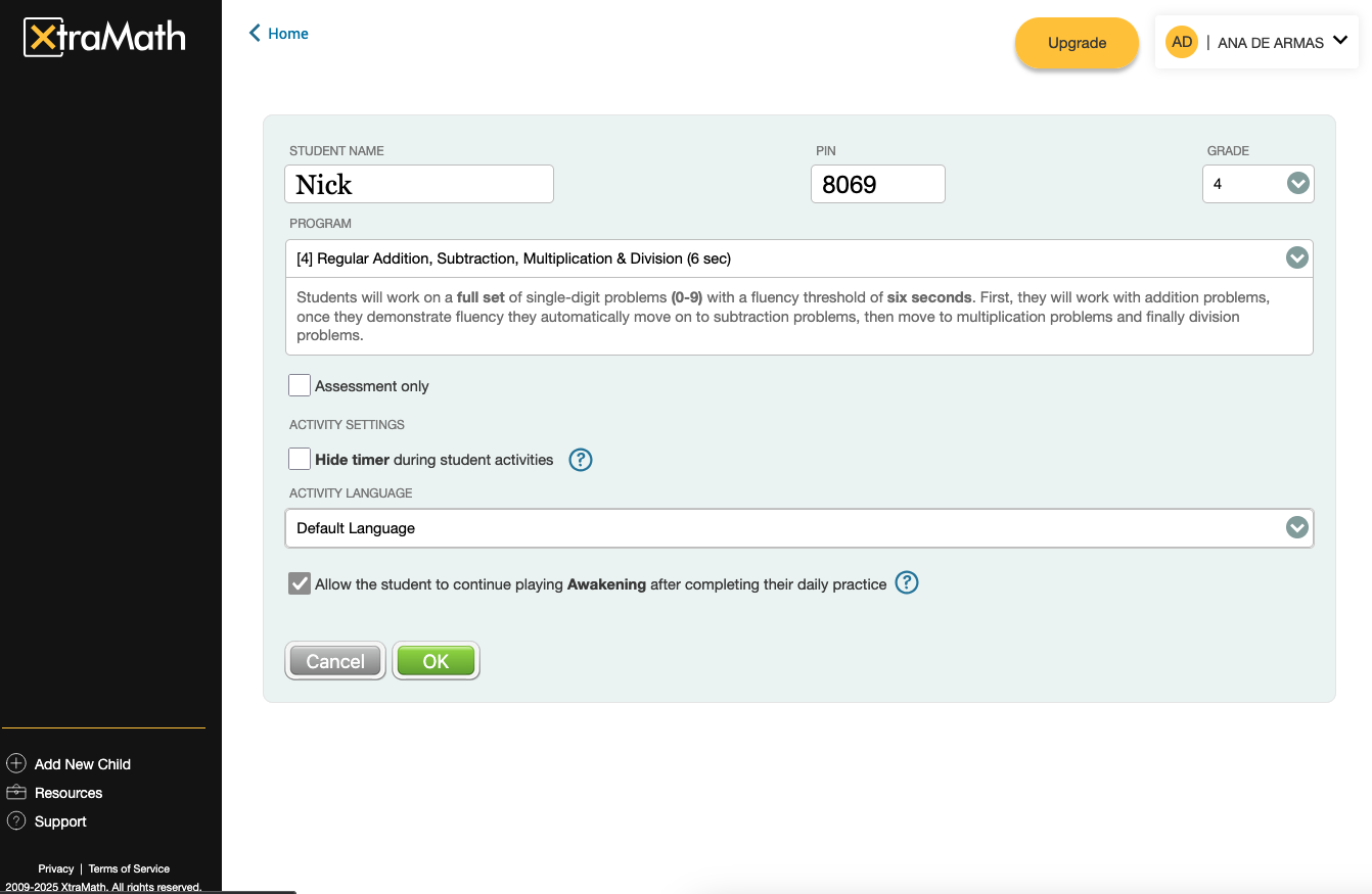 If you have any questions, don’t hesitate to reach out to us at support@xtramath.org.